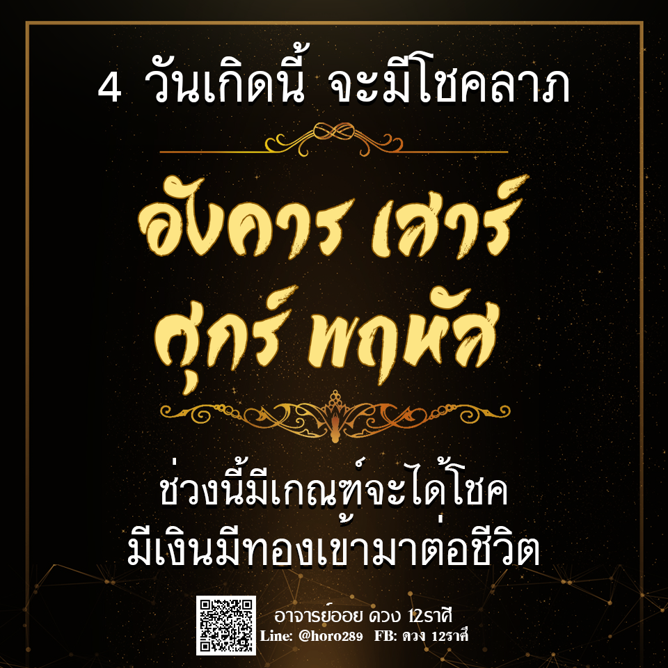 Source: www.khaosod.co.th #ดูดวง #ราศีกรกฏ #ดูดวงโชคลาภ 🌺🌺🌺 รายละเอียดสำหรับท่านผู้ที่เกิดราศี. ช่วงเวลาแห่งโชคลาภ คนทั้ง 7 วันเกิด ดวงทูเดย์ วันเสาร์ที่ 11 เม.ย. ดูดวงโชคลาภและการเงินฟรี ครบทั้ง 12 ราศี ดวงการเงินในปีหน้าของคุณจะเป็นอย่างไร ถ้าอยากรู้ เช็กเลย ! เริ่มปักษ์หลังของ เดือนมิถุนายน กันแล้ว สภาพการเงินของแต่ละคนเป็นอย่างไรกันบ้างคะ วันนี้ลองมาเช็ก. ดวงโชคลาภ ทั้ง 12 ราศี ประจำเดือนมิถุนายน 2562 คุณจะมีโชคลาภจากใครหรือสถานที่ใด.